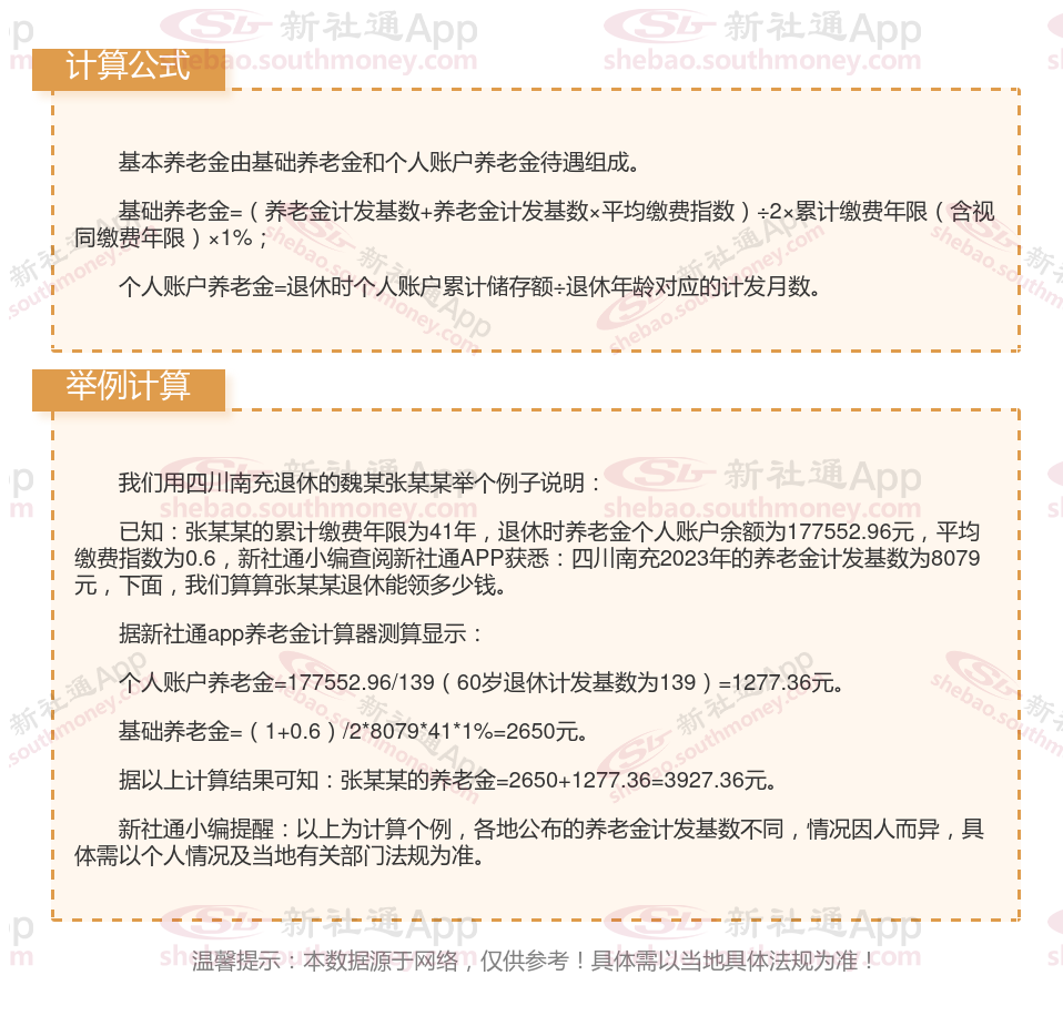 四川南充退休工资养老金计算方法及公式2024年最新(举例说明)