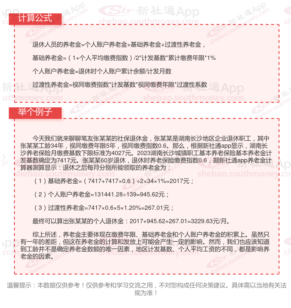湖南长沙退休工资养老金计算方法及公式2024年最新(举例说明)