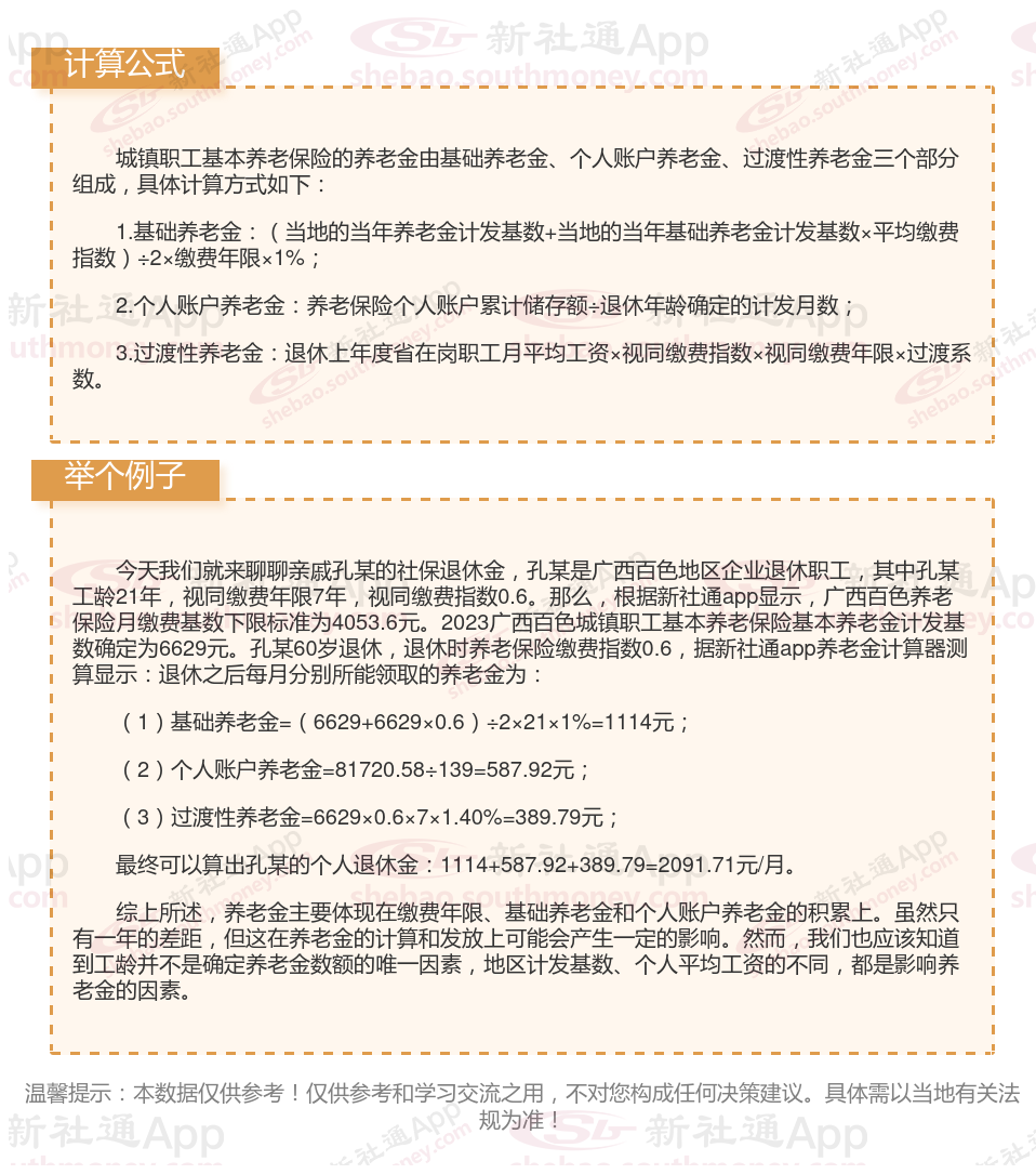 广西百色退休工资养老金计算方法及公式2024年最新(举例说明)