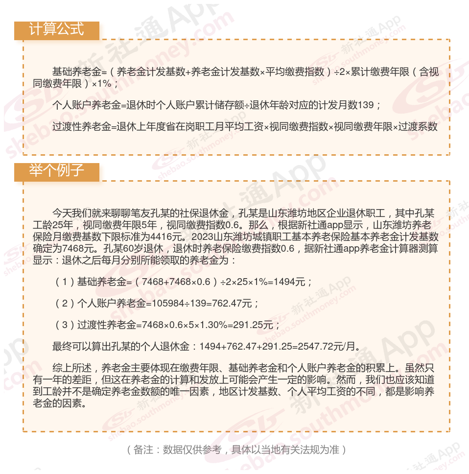 山东潍坊退休工资养老金计算方法及公式2024年最新(举例说明)