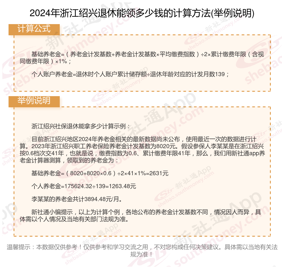 浙江绍兴退休工资养老金计算方法及公式2024年最新(举例说明)