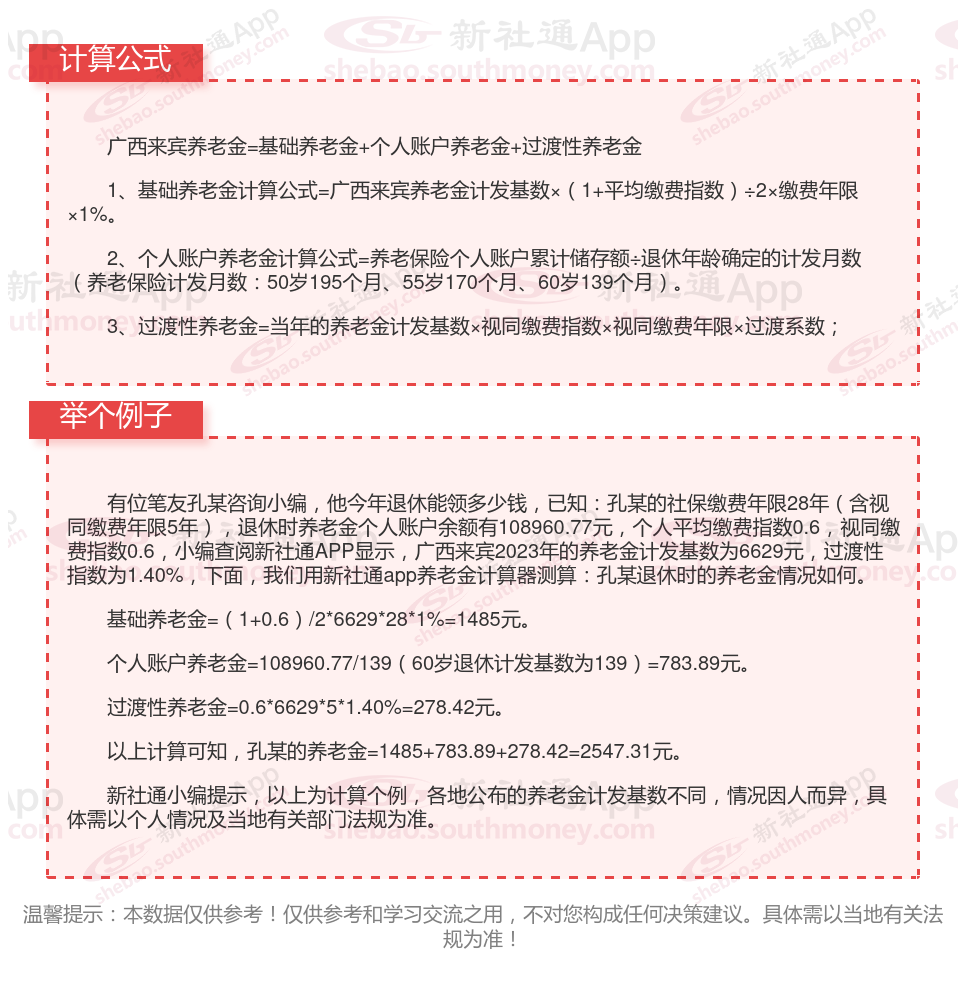 广西来宾退休工资养老金计算方法及公式2024年最新(举例说明)