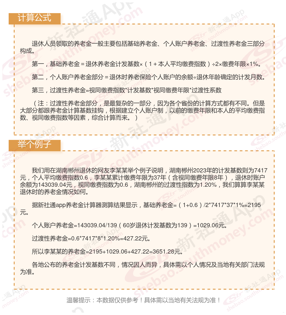 湖南郴州退休工资养老金计算方法及公式2024年最新(举例说明)