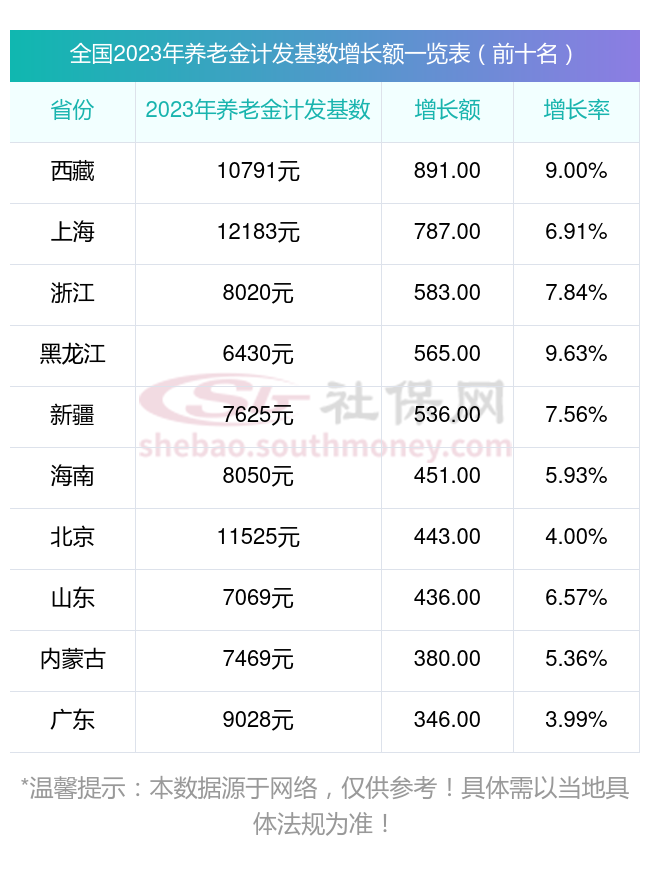 2023年最新养老金计发基数增长额排行榜前几位的情况如何呢?