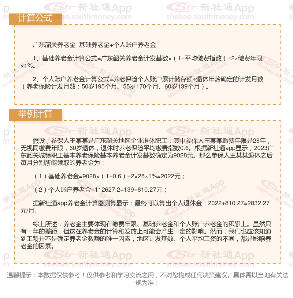 广东韶关退休工资养老金计算方法及公式2024年最新(举例说明)