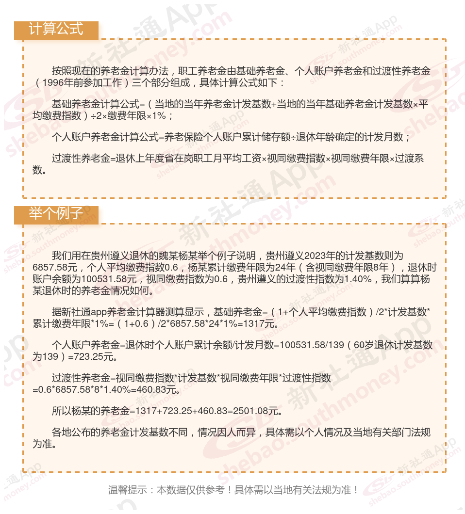 贵州遵义退休工资养老金计算方法及公式2024年最新(举例说明)
