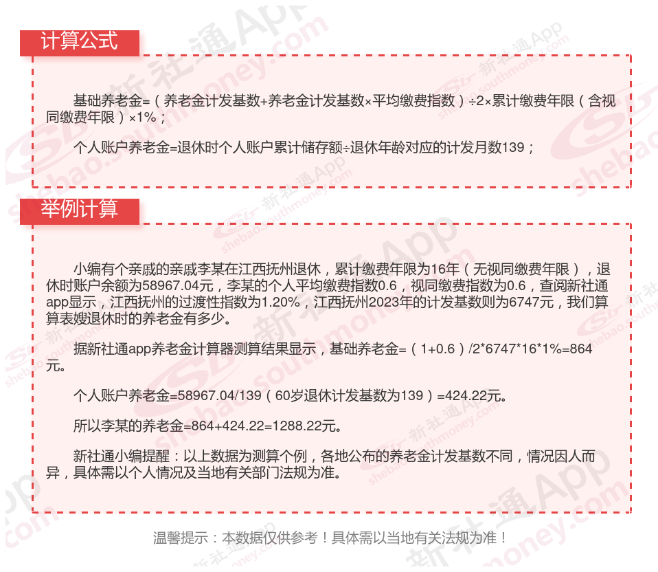江西抚州退休工资养老金计算方法及公式2024年最新(举例说明)