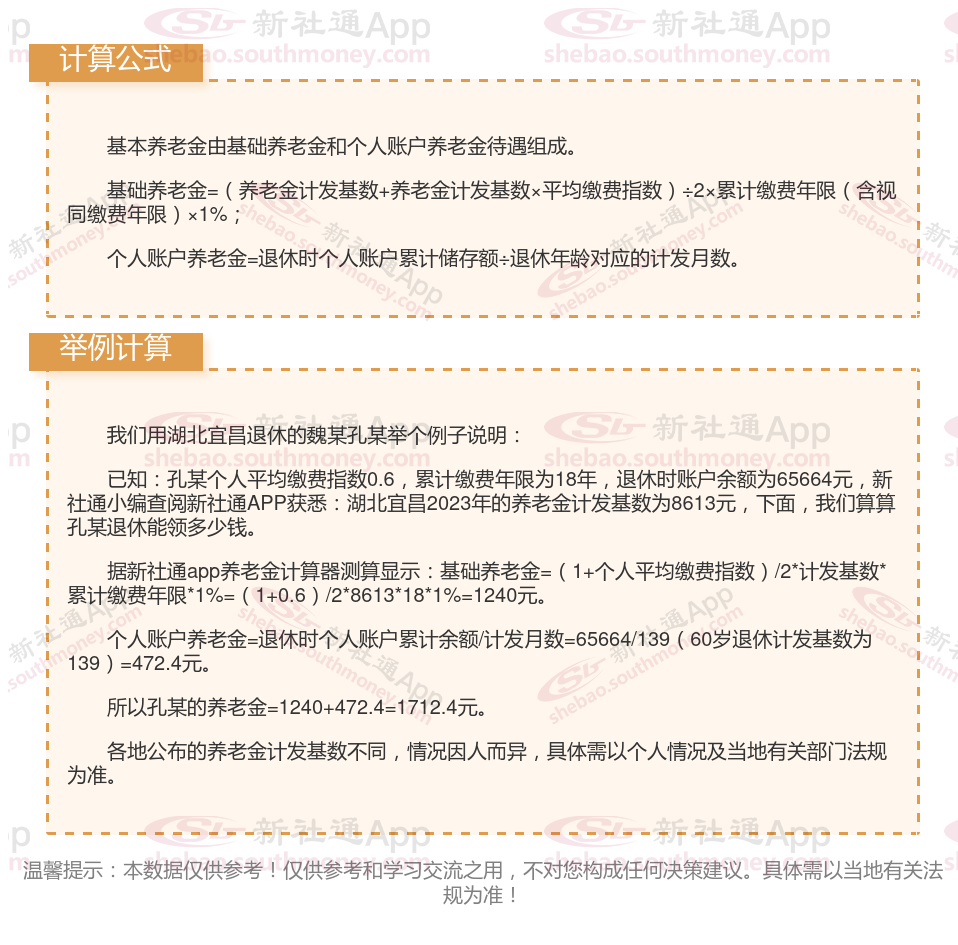 湖北宜昌退休工资养老金计算方法及公式2024年最新(举例说明)