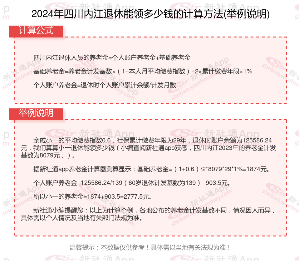 四川内江退休工资养老金计算方法及公式2024年最新(举例说明)