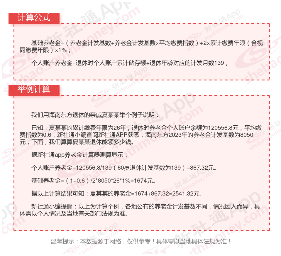 海南东方退休工资养老金计算方法及公式2024年最新(举例说明)
