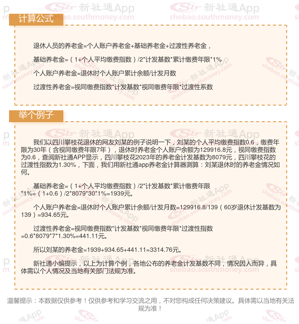 四川攀枝花退休工资养老金计算方法及公式2024年最新(举例说明)