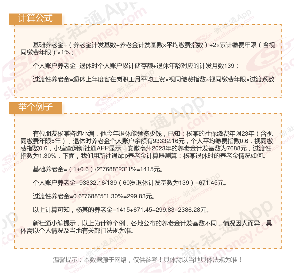 安徽亳州退休工资养老金计算方法及公式2024年最新(举例说明)