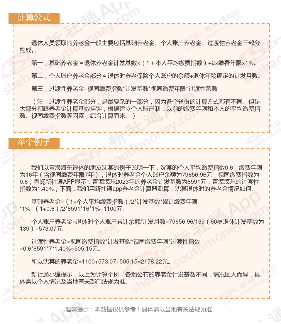 青海海东退休工资养老金计算方法及公式2024年最新(举例说明)
