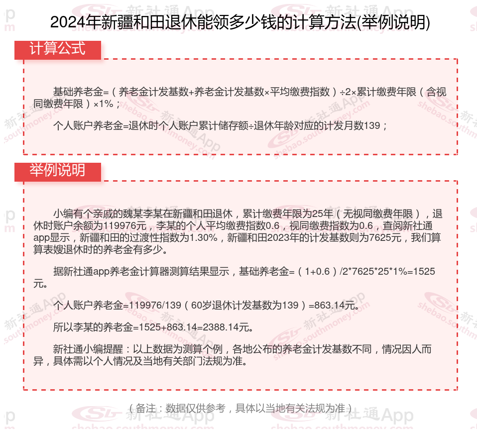 新疆和田退休工资养老金计算方法及公式2024年最新(举例说明)