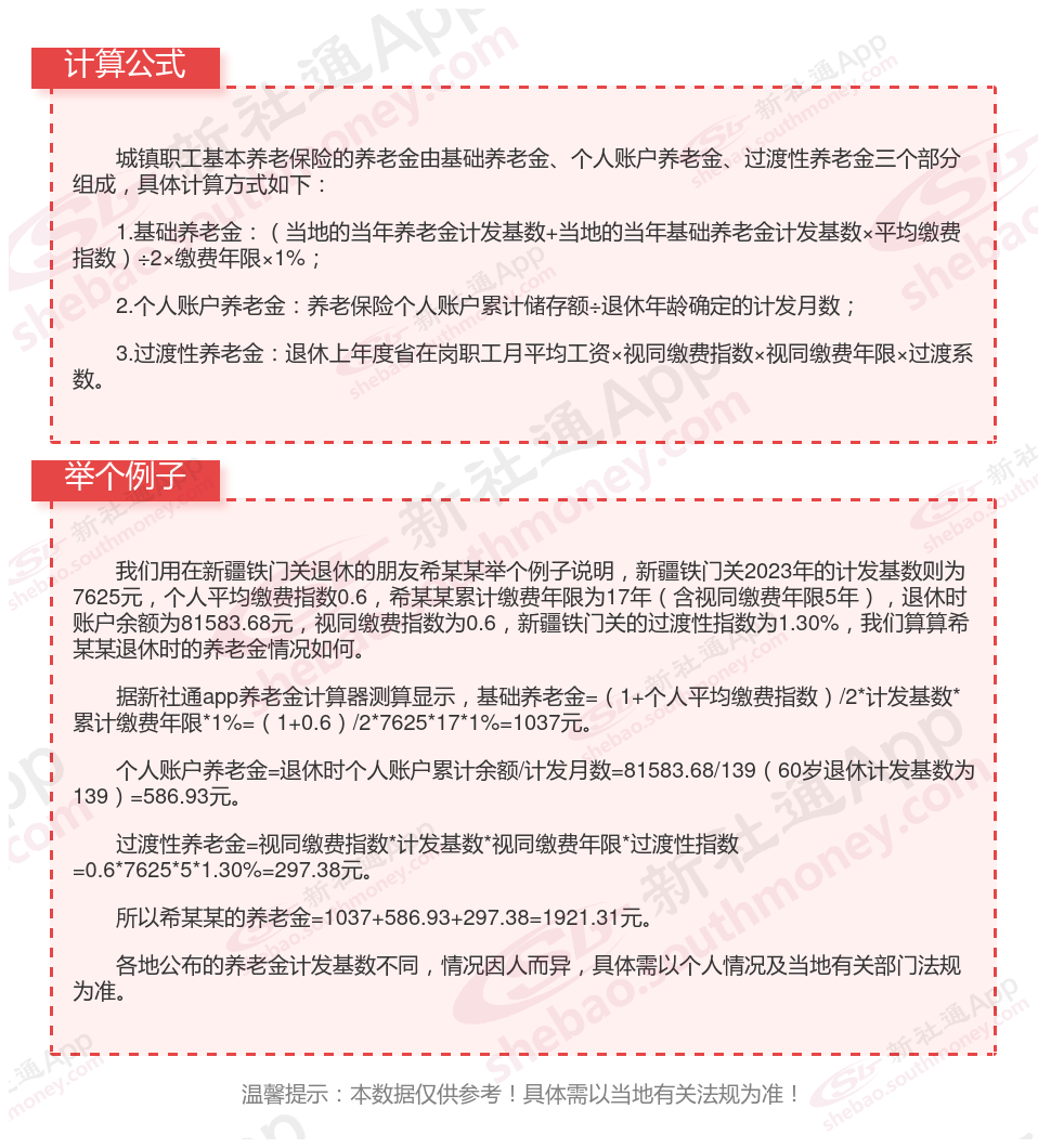 新疆铁门关退休工资养老金计算方法及公式2024年最新(举例说明)