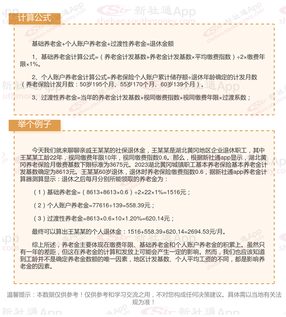 湖北黄冈退休工资养老金计算方法及公式2024年最新(举例说明)