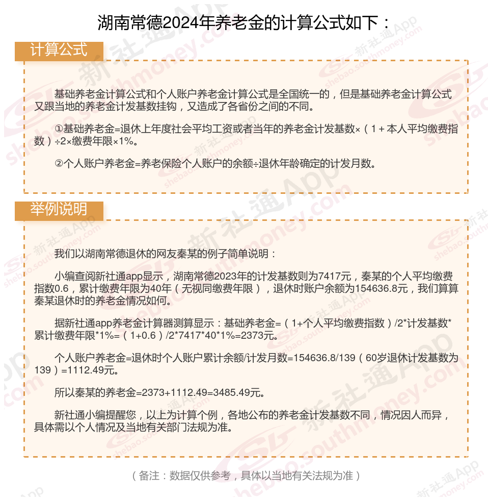 湖南常德退休工资养老金计算方法及公式2024年最新(举例说明)