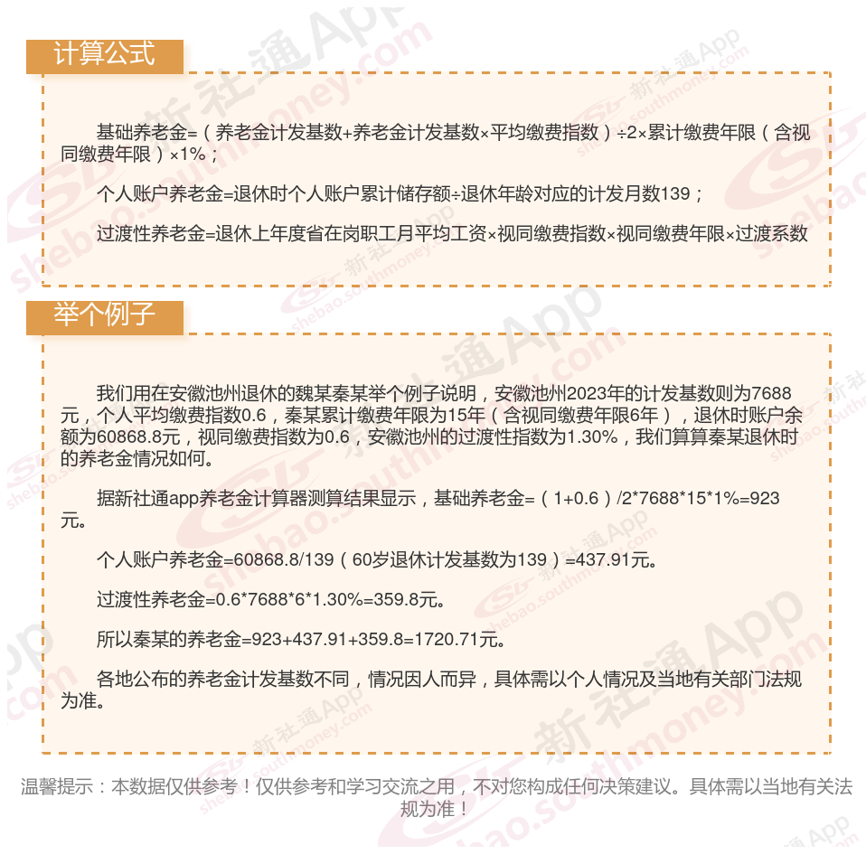 安徽池州退休工资养老金计算方法及公式2024年最新(举例说明)