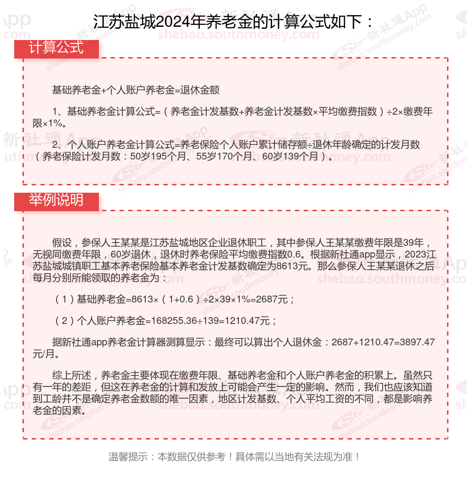 江苏盐城退休工资养老金计算方法及公式2024年最新(举例说明)