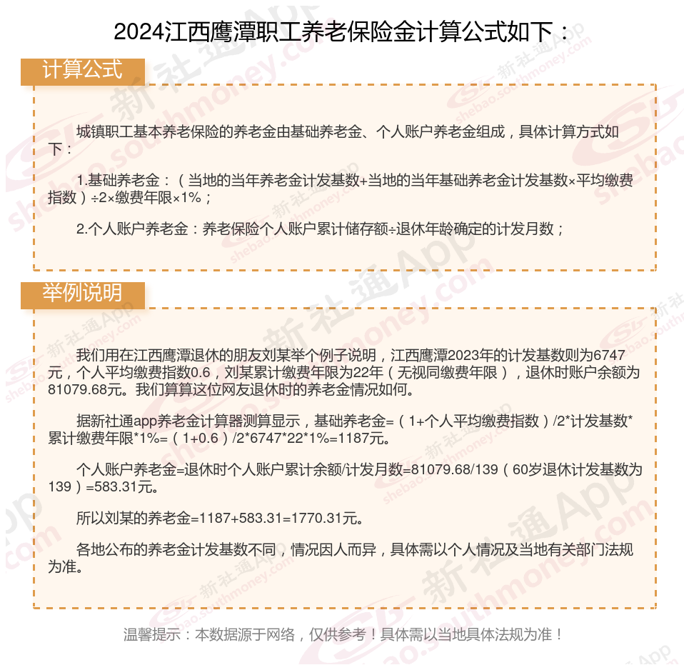 江西鹰潭退休工资养老金计算方法及公式2024年最新(举例说明)
