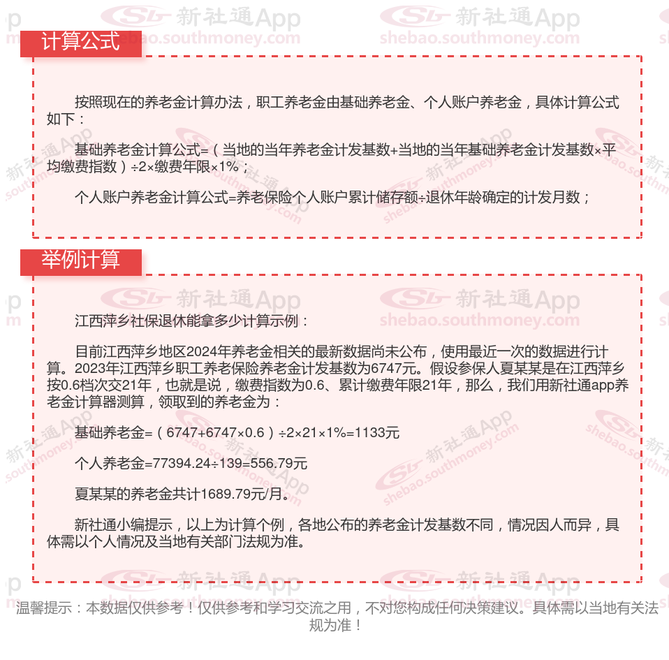 江西萍乡退休工资养老金计算方法及公式2024年最新(举例说明)