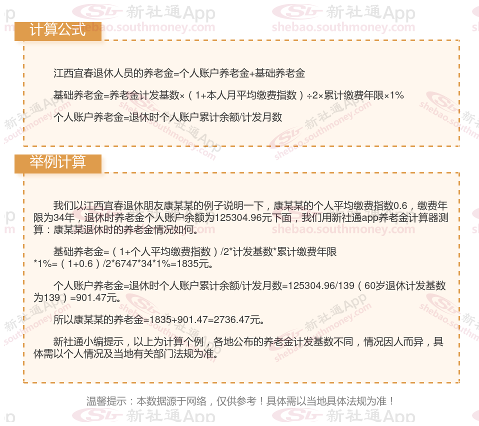 江西宜春退休工资养老金计算方法及公式2024年最新(举例说明)