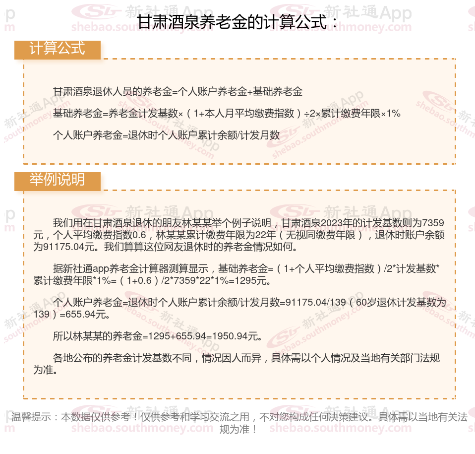 甘肃酒泉退休工资养老金计算方法及公式2024年最新(举例说明)