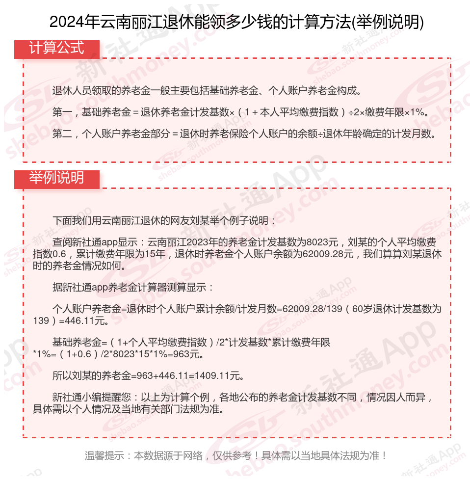云南丽江退休工资养老金计算方法及公式2024年最新(举例说明)