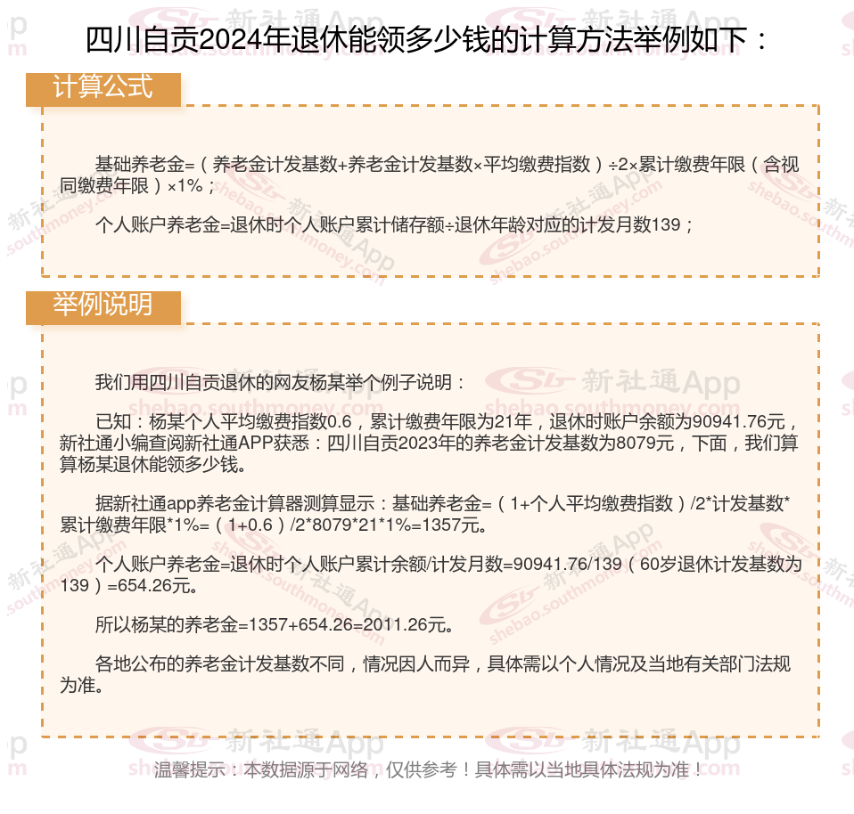 四川自贡退休工资养老金计算方法及公式2024年最新(举例说明)