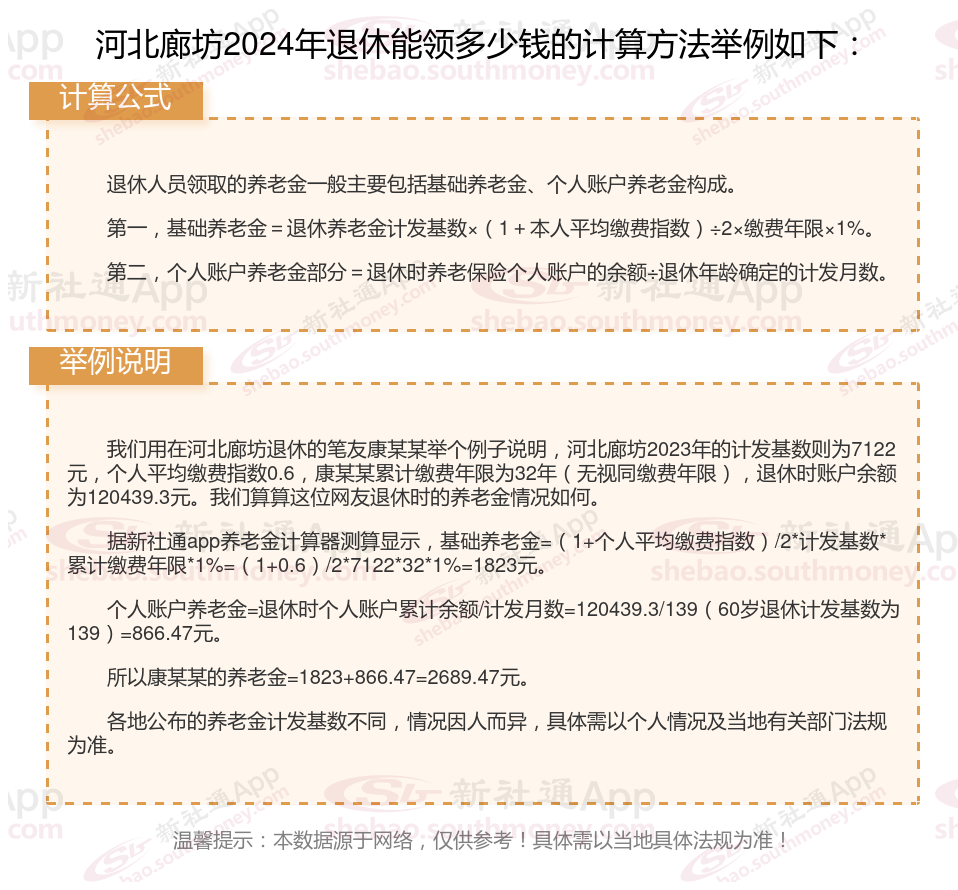 河北廊坊退休工资养老金计算方法及公式2024年最新(举例说明)