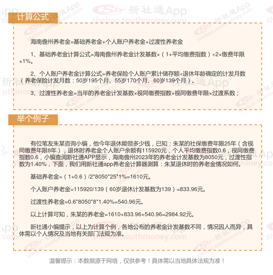 海南儋州退休工资养老金计算方法及公式2024年最新(举例说明)