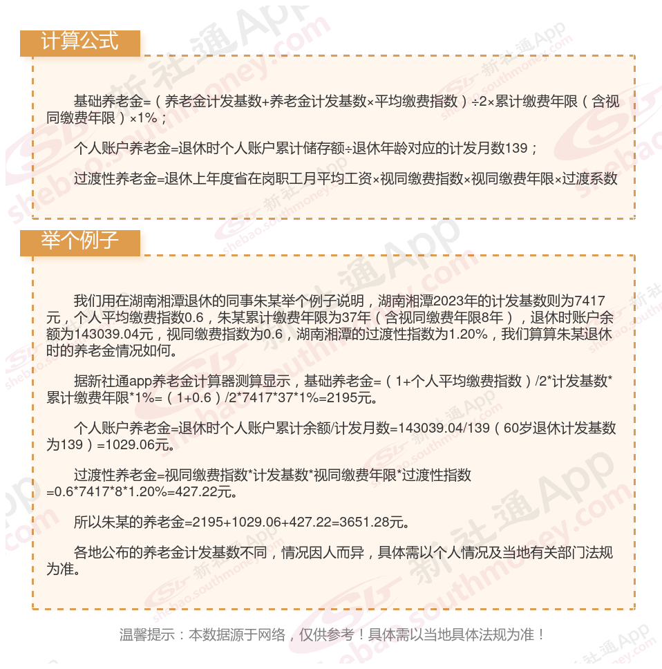 湖南湘潭退休工资养老金计算方法及公式2024年最新(举例说明)