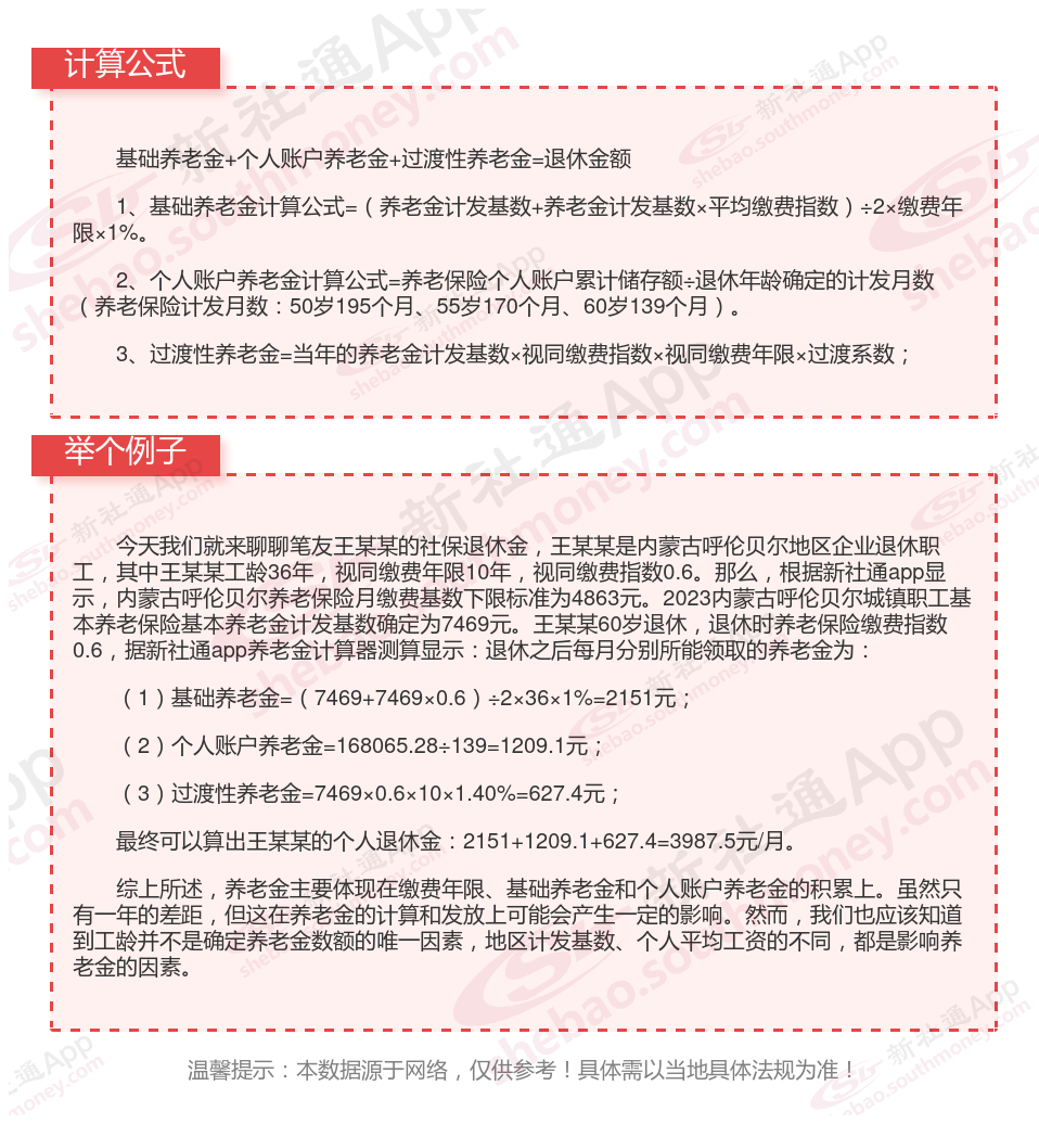 内蒙古呼伦贝尔退休工资养老金计算方法及公式2024年最新(举例说明)
