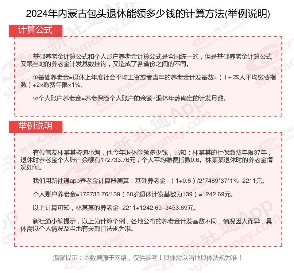 内蒙古包头退休工资养老金计算方法及公式2024年最新(举例说明)
