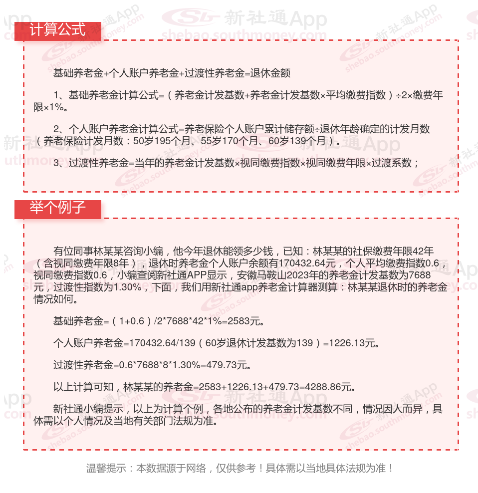 安徽马鞍山退休工资养老金计算方法及公式2024年最新(举例说明)