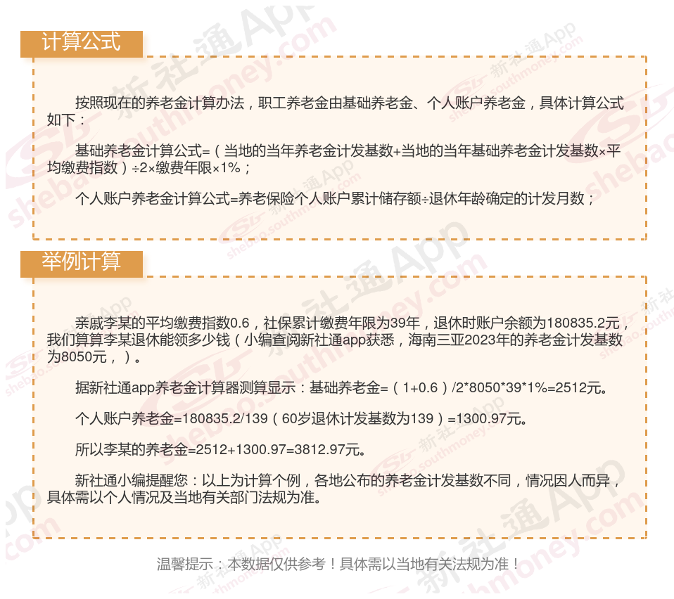 海南三亚退休工资养老金计算方法及公式2024年最新(举例说明)