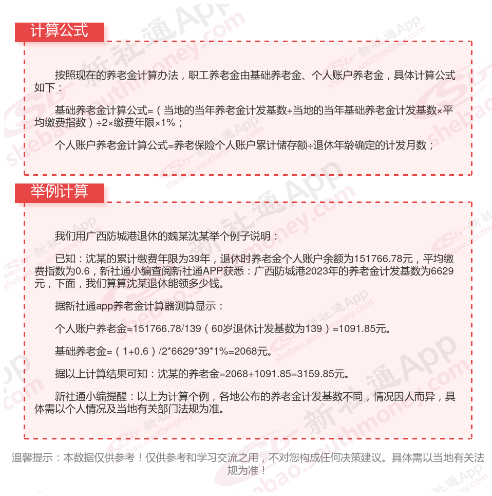 广西防城港退休工资养老金计算方法及公式2024年最新(举例说明)