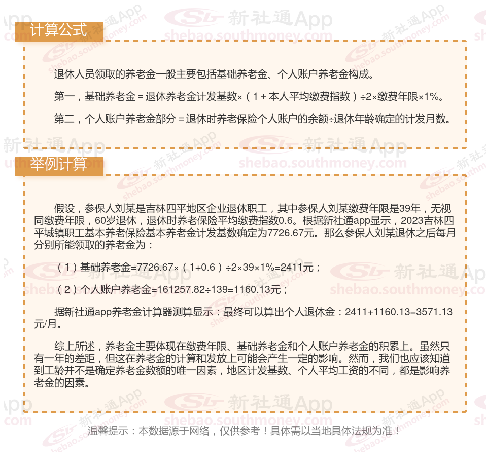 吉林四平退休工资养老金计算方法及公式2024年最新(举例说明)