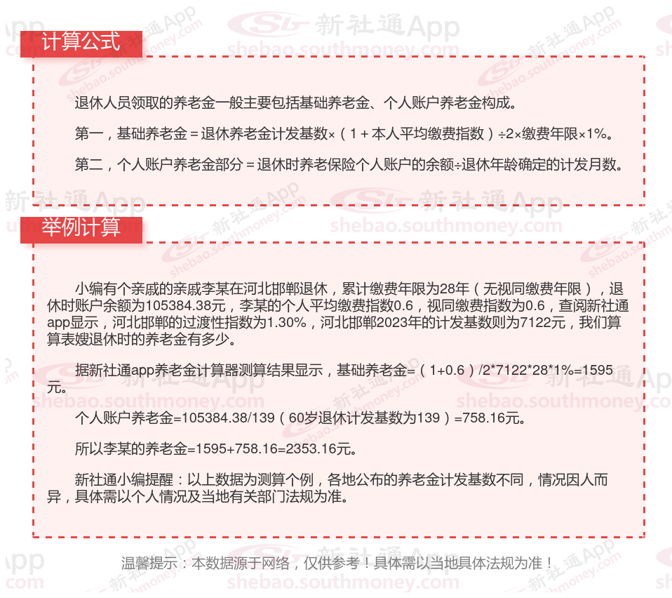 河北邯郸退休工资养老金计算方法及公式2024年最新(举例说明)