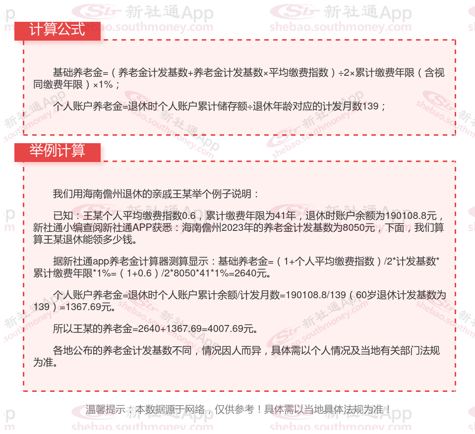 海南儋州退休工资养老金计算方法及公式2024年最新(举例说明)