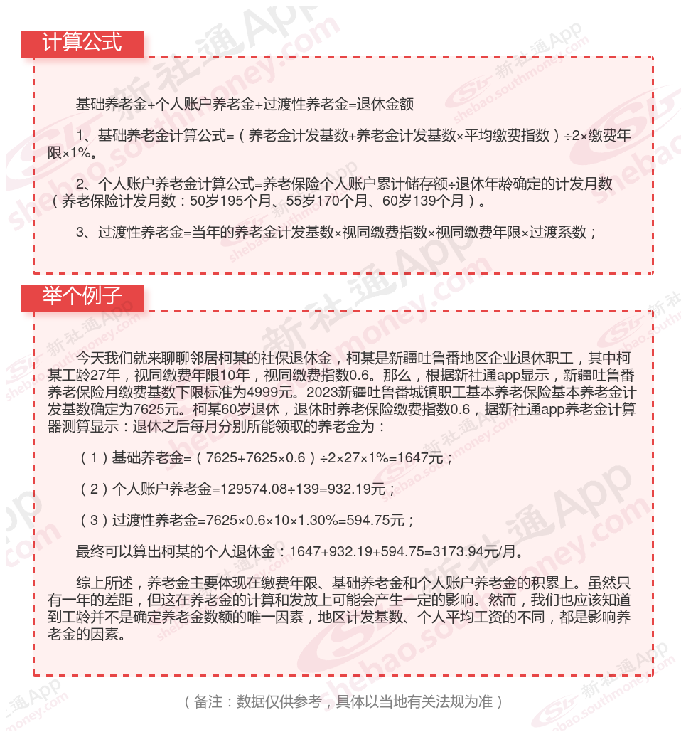 新疆吐鲁番退休工资养老金计算方法及公式2024年最新(举例说明)