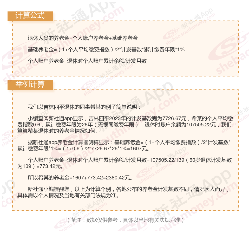 吉林四平退休工资养老金计算方法及公式2024年最新(举例说明)