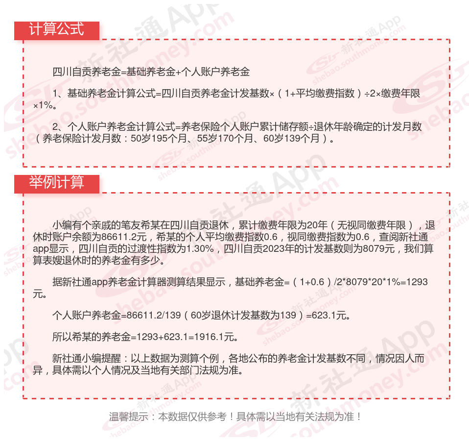 四川自贡退休工资养老金计算方法及公式2024年最新(举例说明)