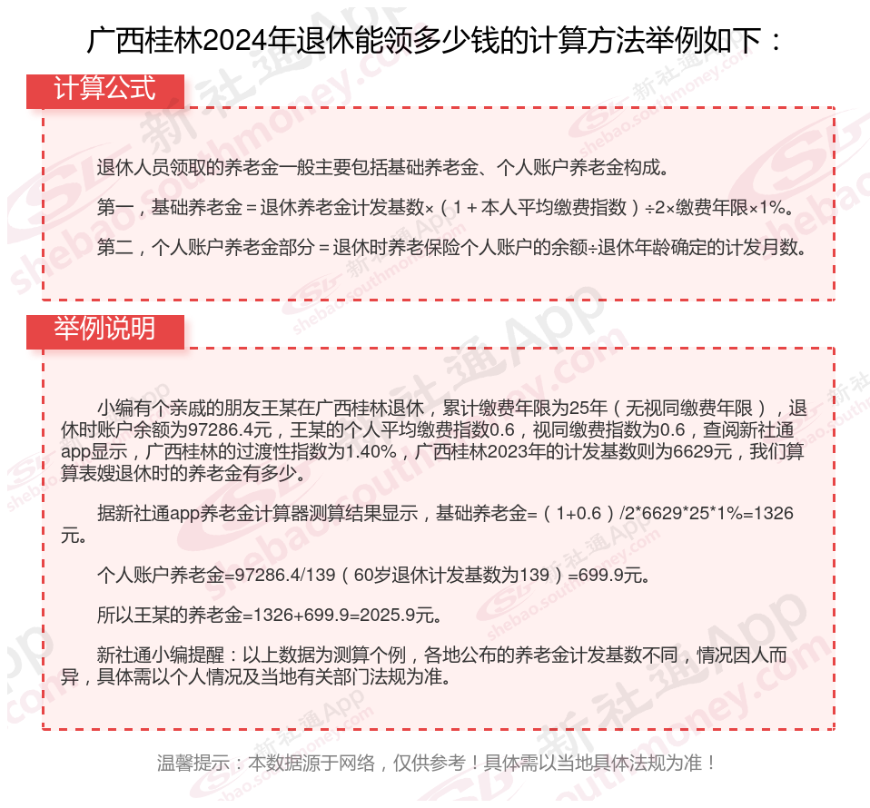 广西桂林退休工资养老金计算方法及公式2024年最新(举例说明)
