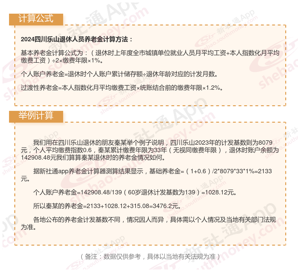 四川乐山退休工资养老金计算方法及公式2024年最新(举例说明)
