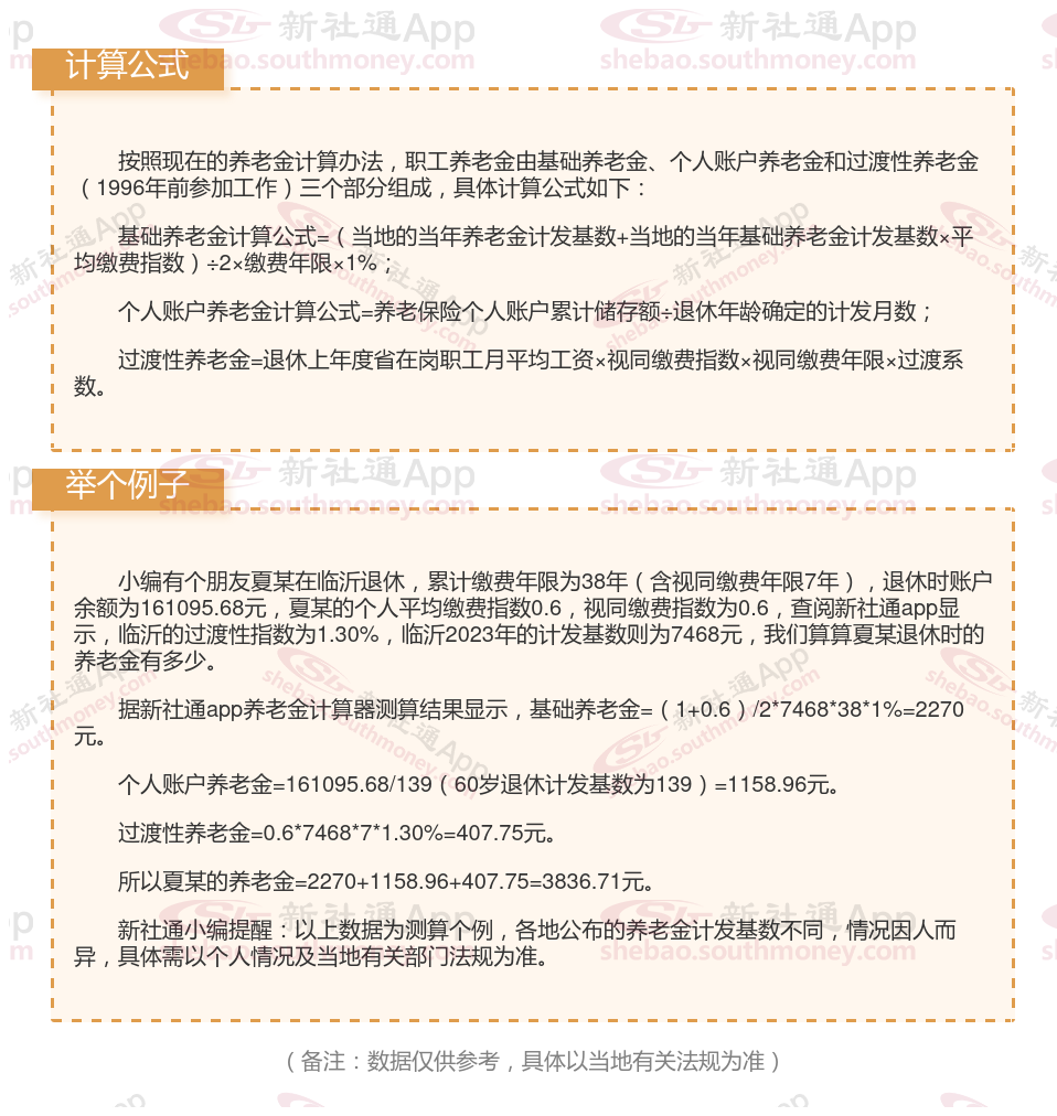 1、基础养老金计算公式=临沂养老金计发基数×(1+平均缴费指数)÷2×缴费年限×1%。