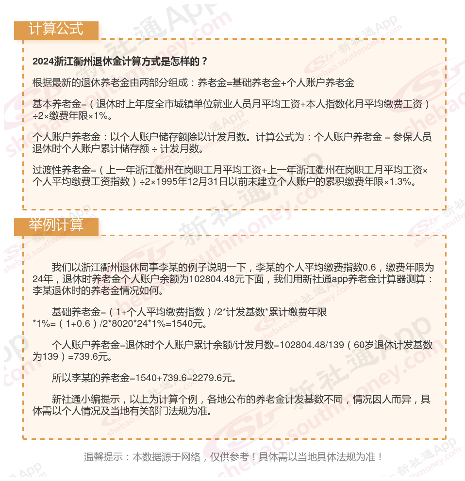 浙江衢州退休工资养老金计算方法及公式2024年最新(举例说明)