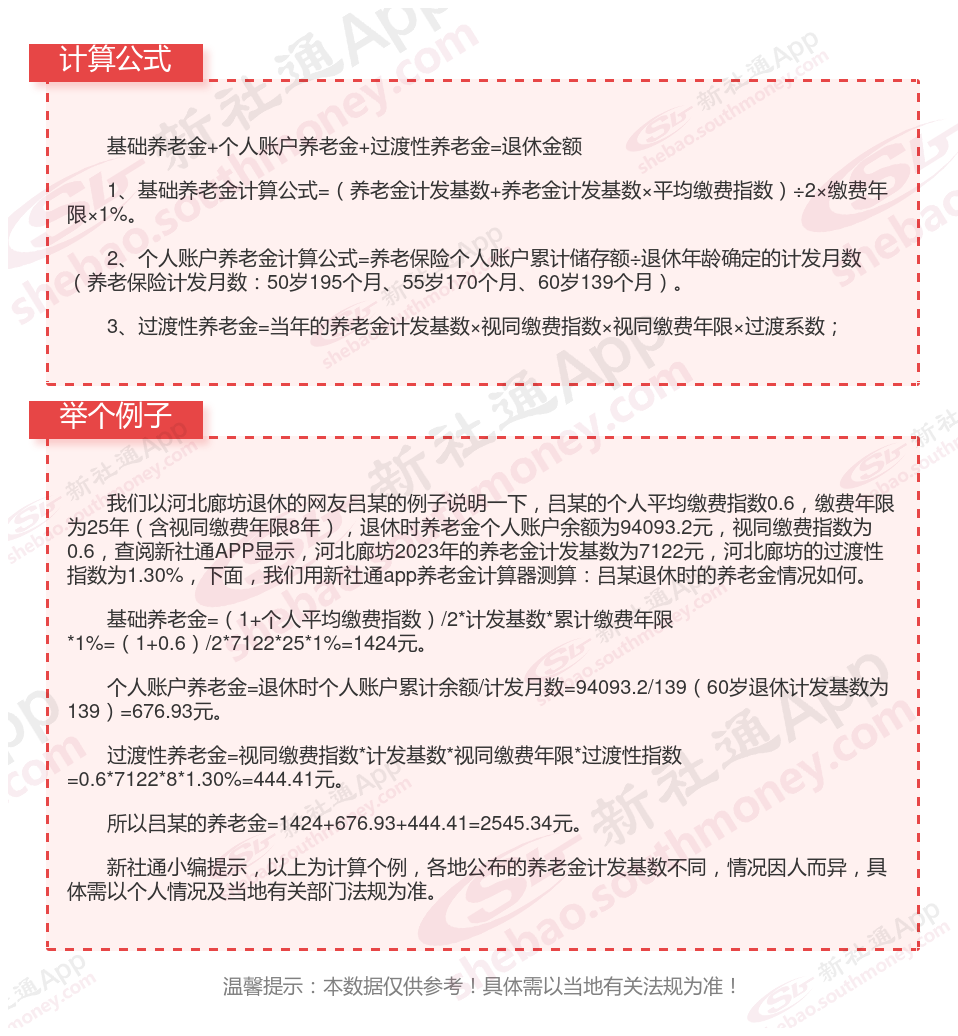 河北廊坊退休工资养老金计算方法及公式2024年最新(举例说明)