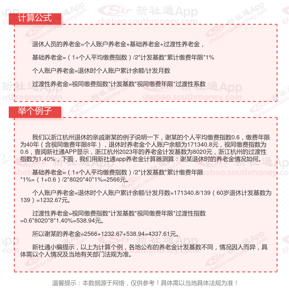 浙江杭州退休工资养老金计算方法及公式2024年最新(举例说明)