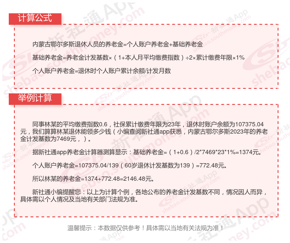内蒙古鄂尔多斯退休工资养老金计算方法及公式2024年最新(举例说明)